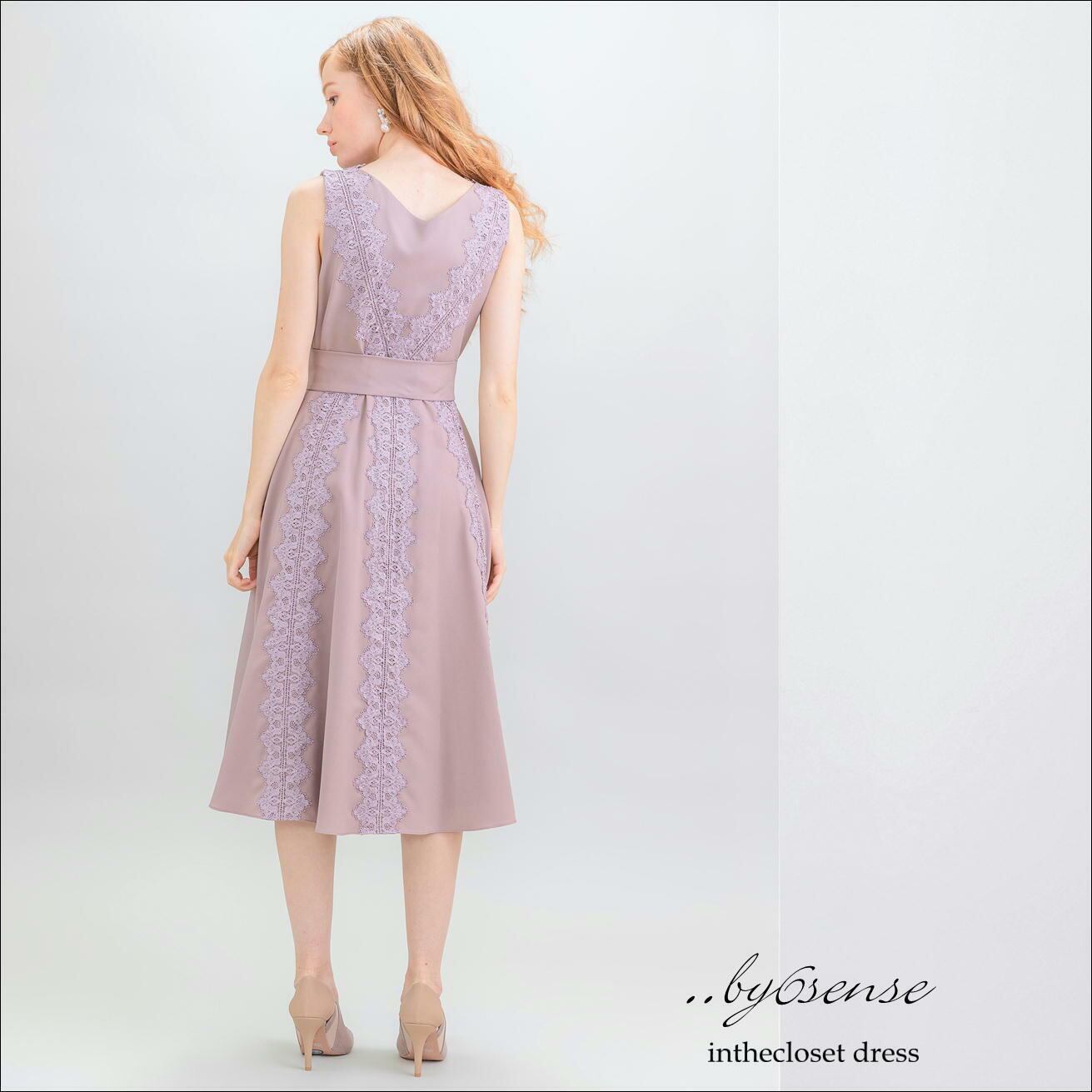 縦のレースがふんだんにあしらわれたエレガントなドレス。