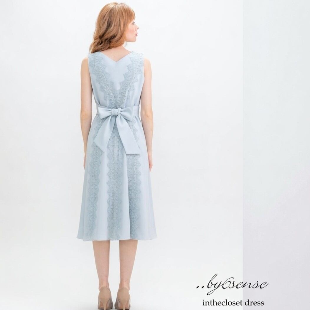 ライトブルー サッシュベルト付き縦レースワンピース 24679-1