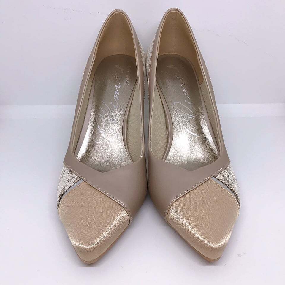 レース素材とキラキラのラメが高級感のあるエレガントな足元を演出。