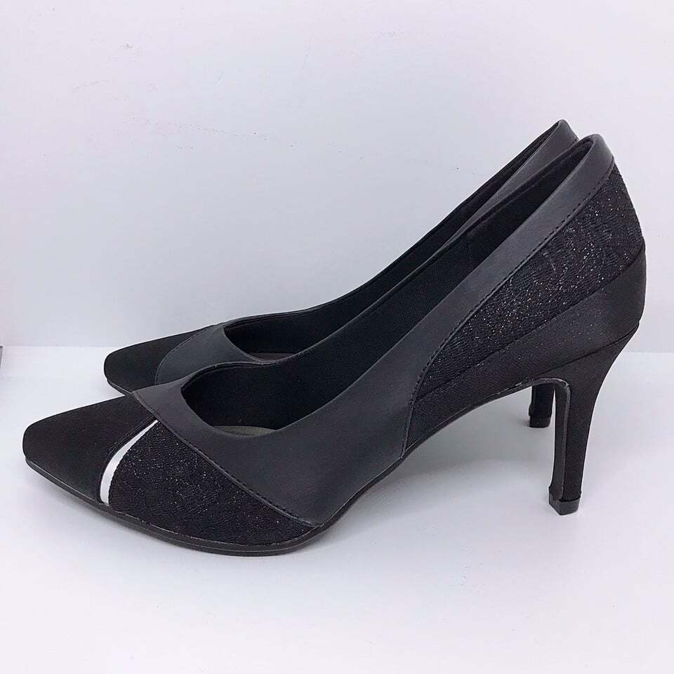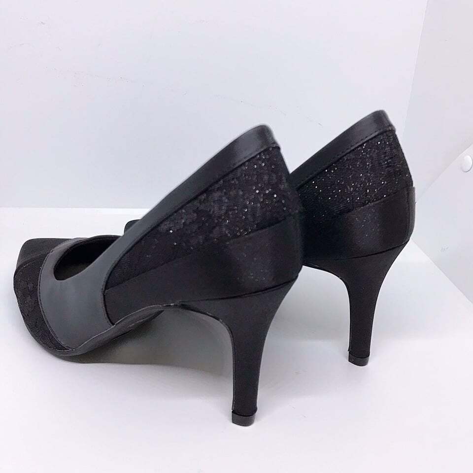 7cmヒール サテンレースパンプス Black climbパンプス3520 21,5㎝~25cm