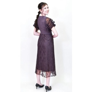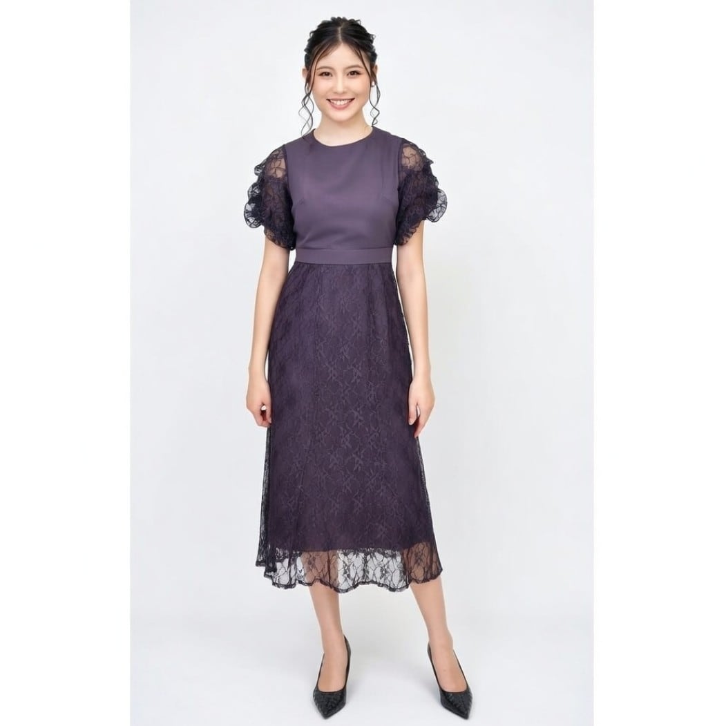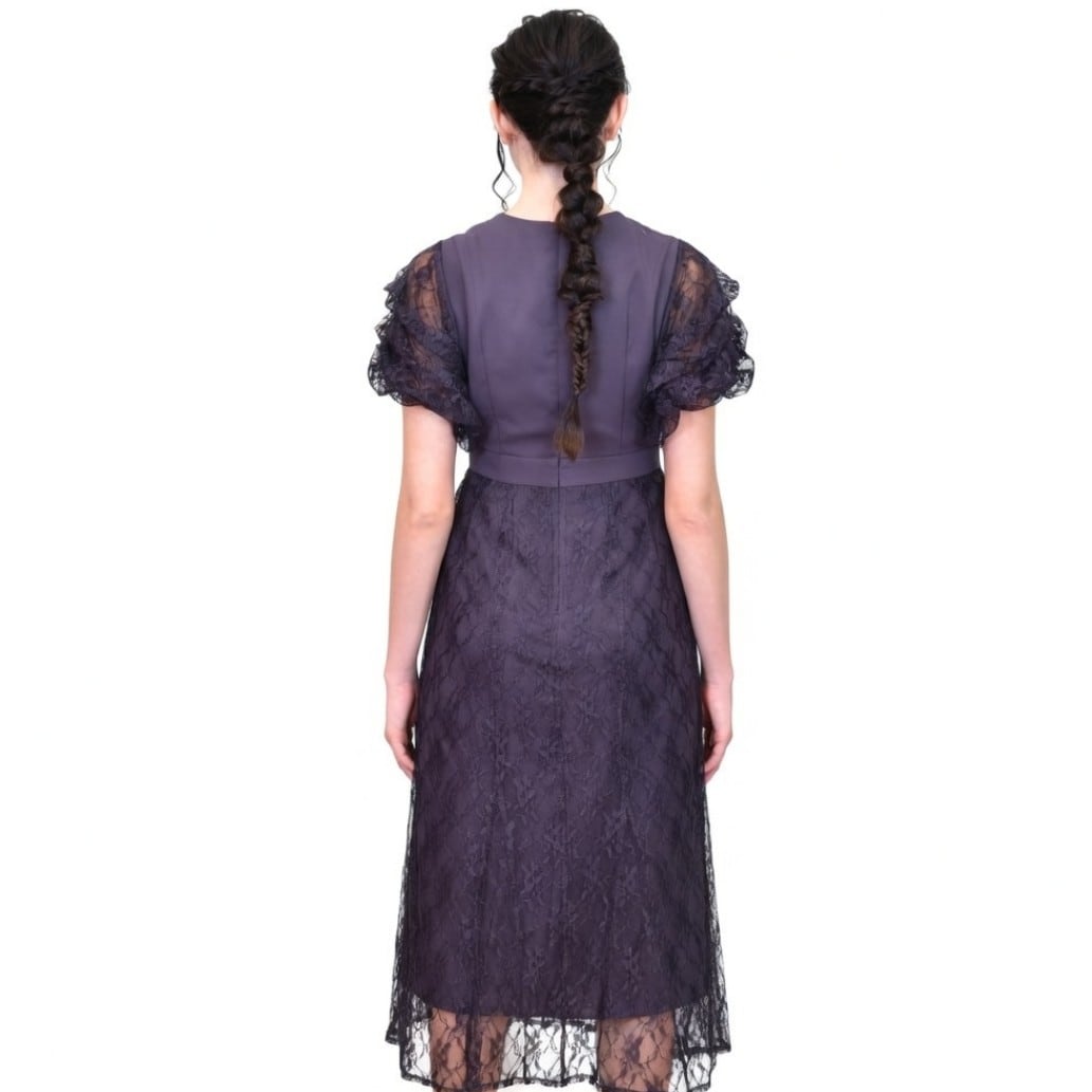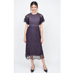 袖はギャザーでボリュームデザインに。スカート部分は繊細な花柄レースが可愛い。